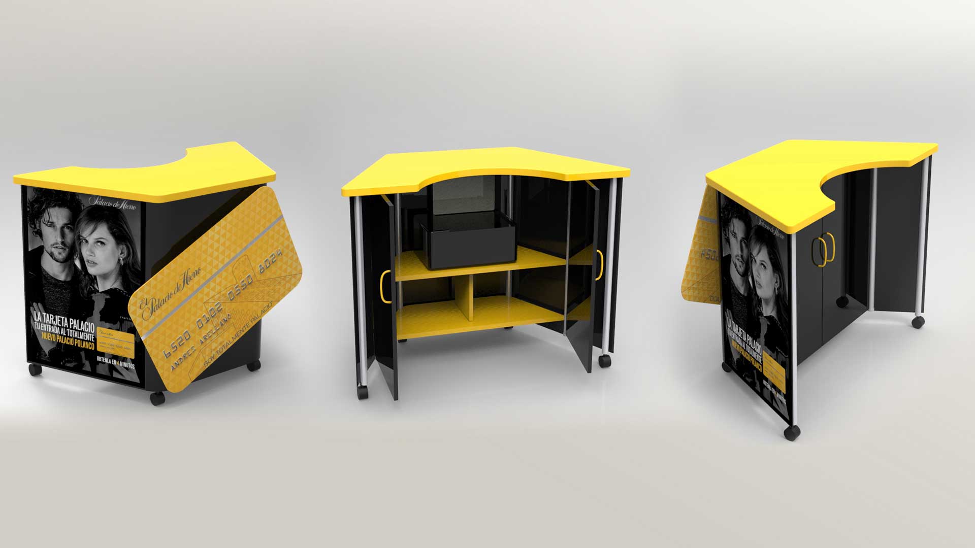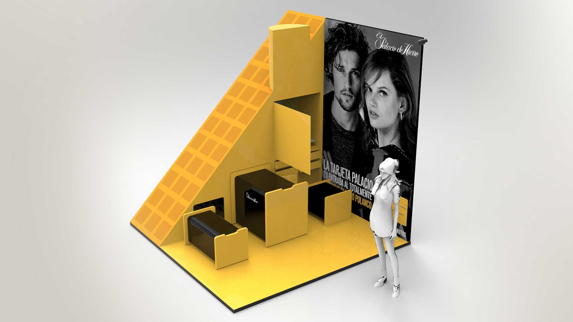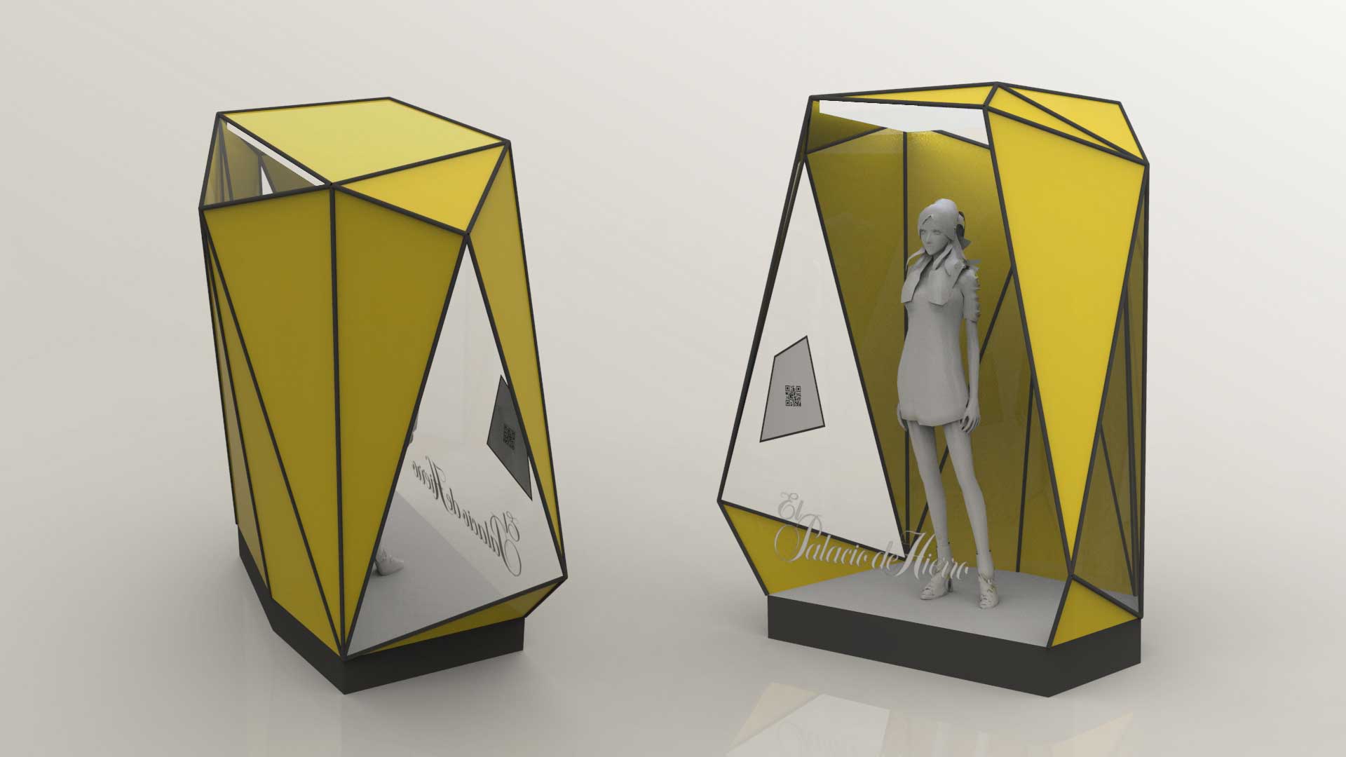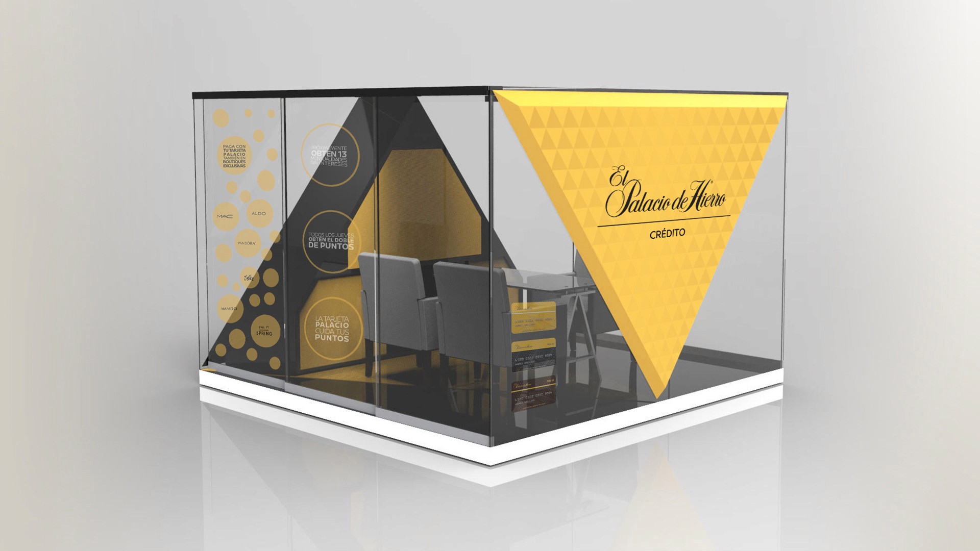 Developed high-end mall displays and portable promotional units, including geometric showcases and branded carts, reflecting Palacio de Hierro’s refined and modern aesthetic. 3D renders by Juan Carlos Catano.