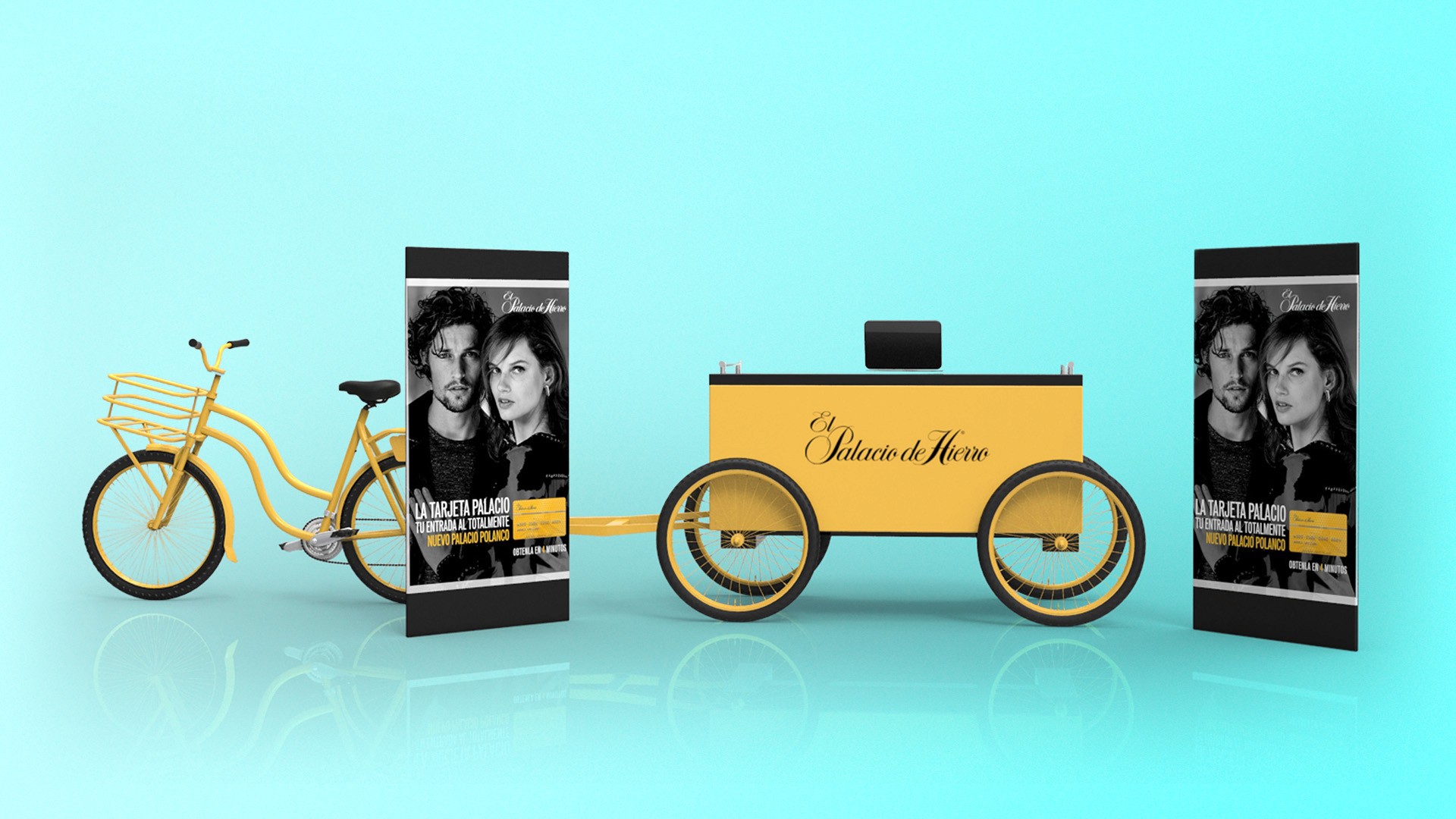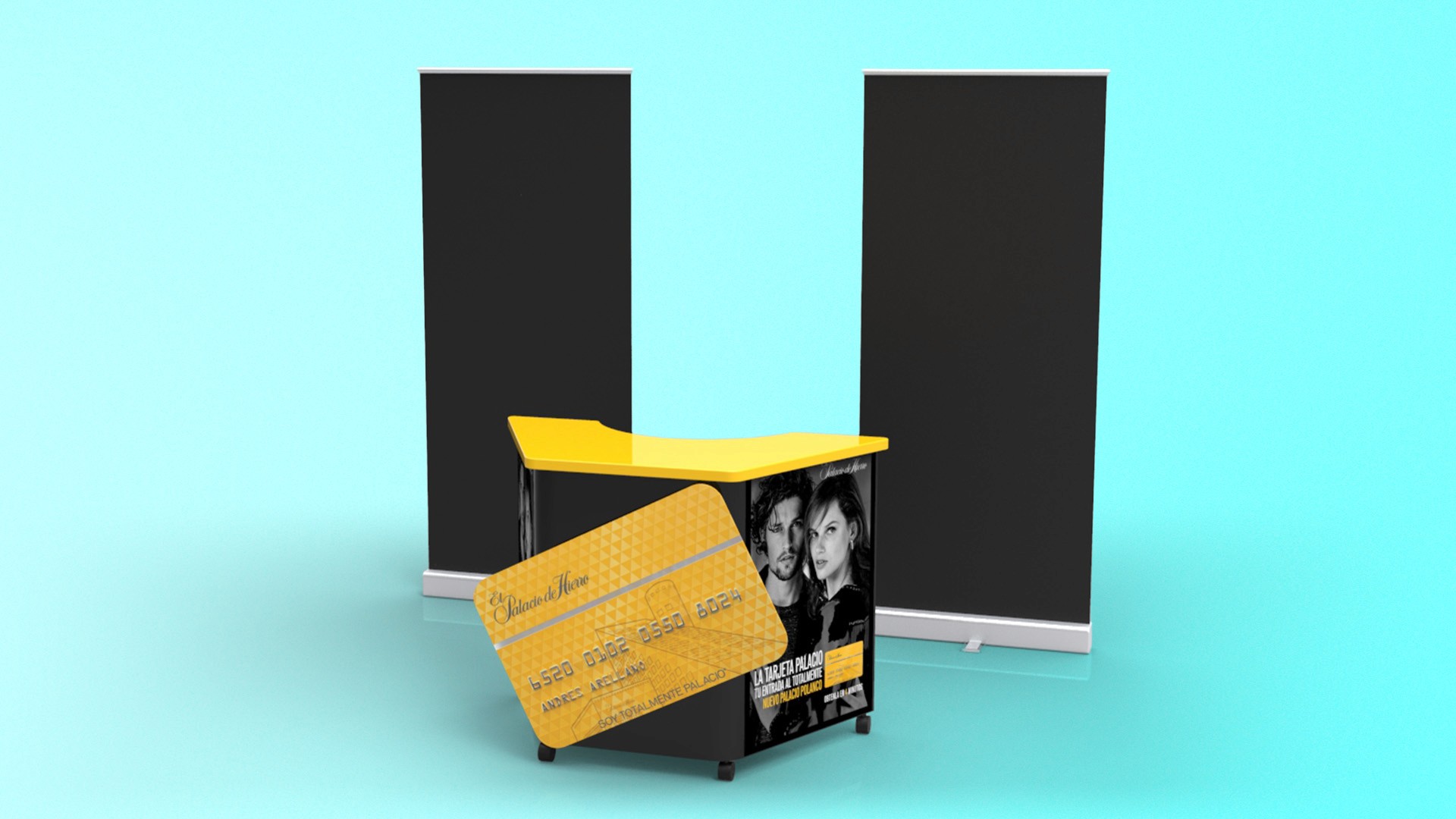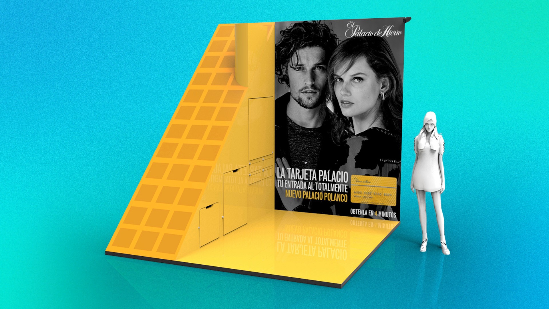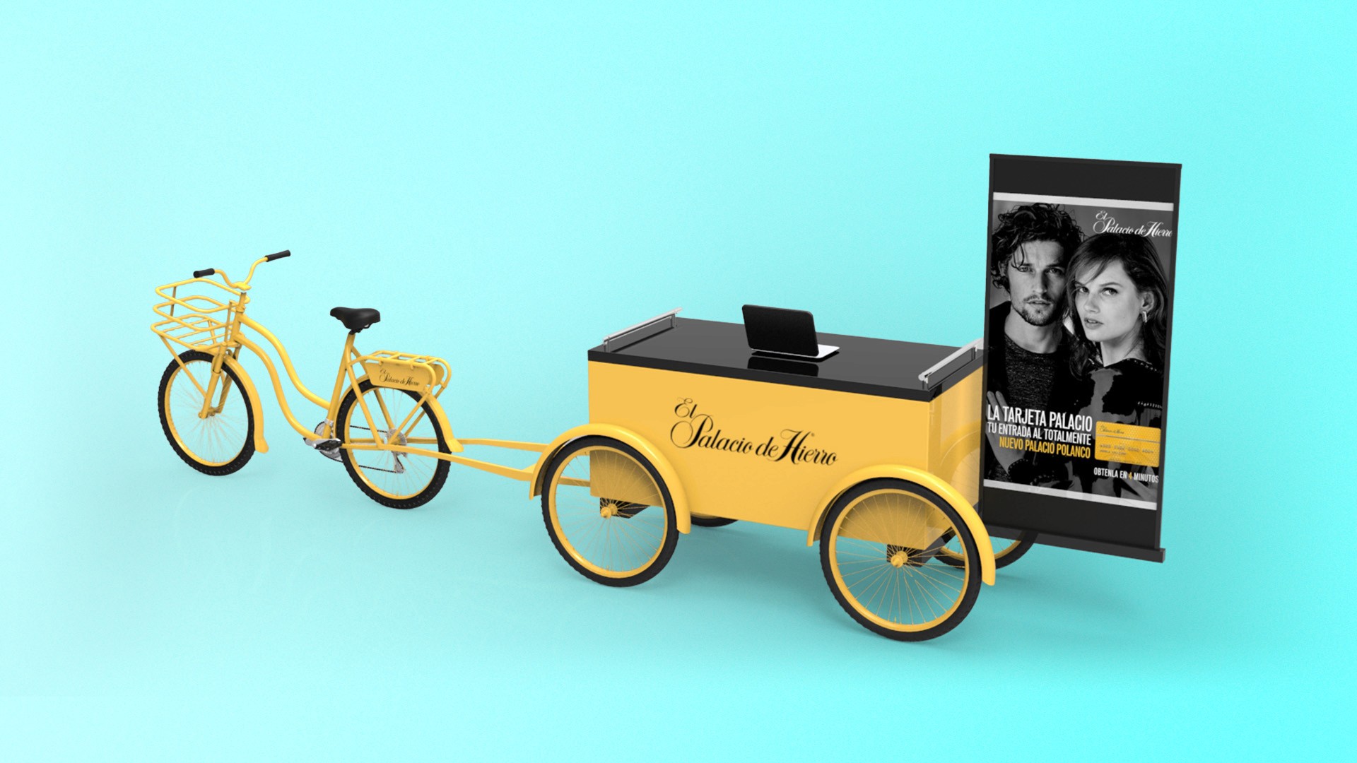 Developed high-end mall displays and portable promotional units, including geometric showcases and branded carts, reflecting Palacio de Hierro’s refined and modern aesthetic. 3D renders by Juan Carlos Catano.