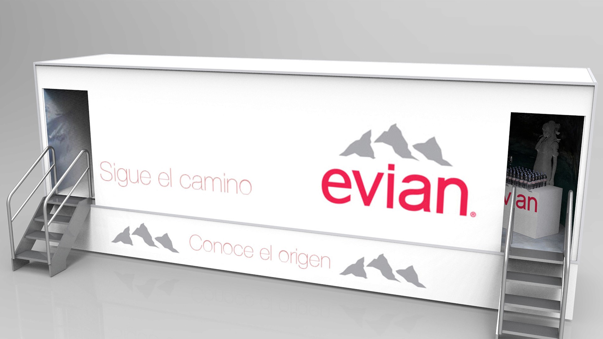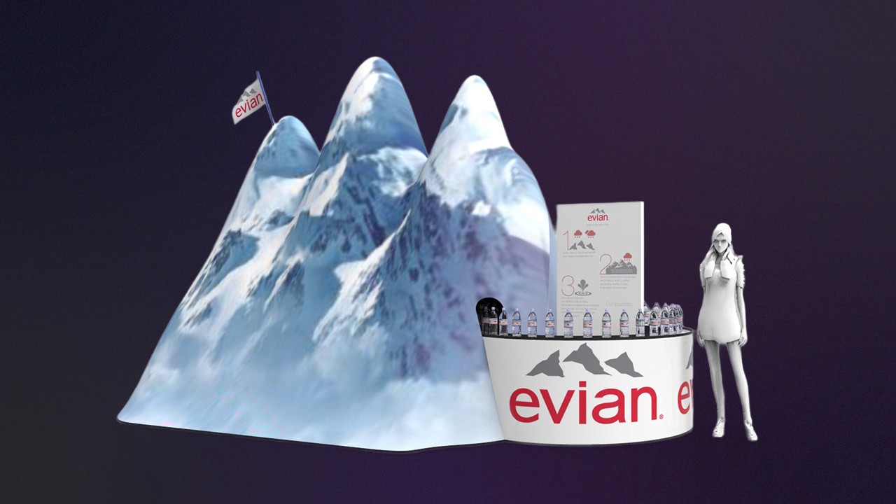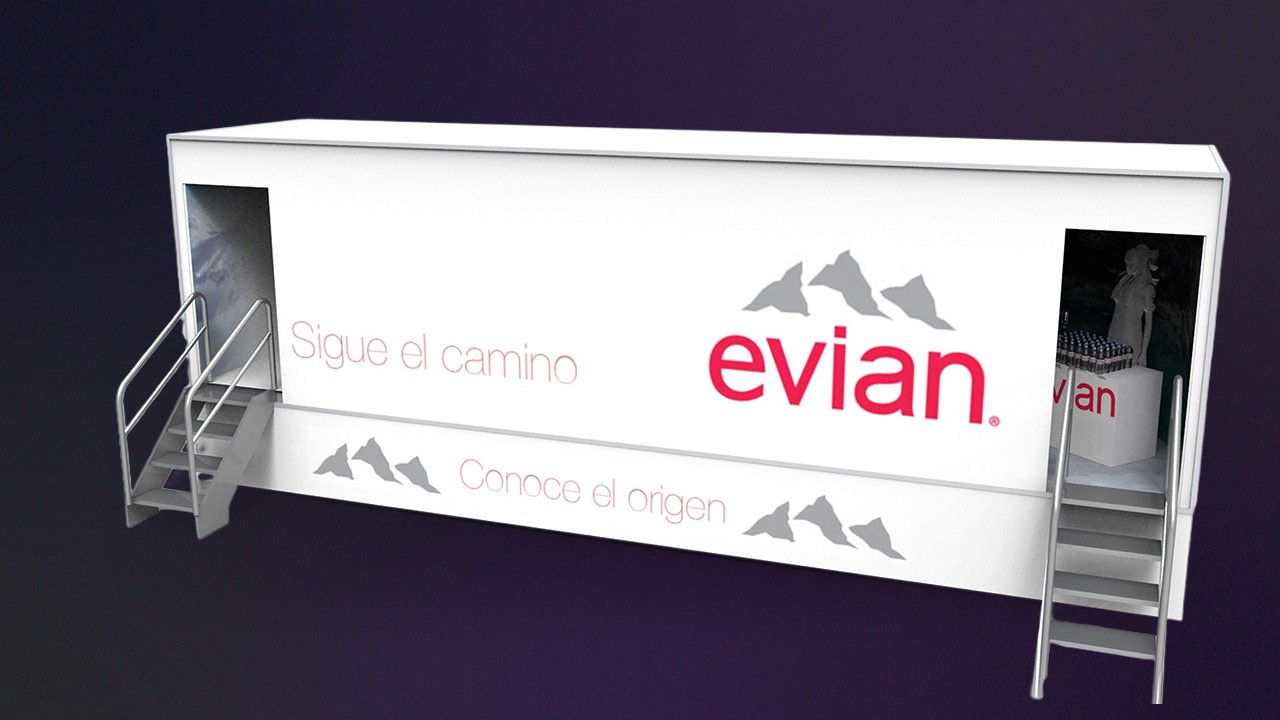 Developed a pop-up truck and multi-sensory display titled “Discover the Origin", recreating the journey of Evian water from alpine source to bottle through immersive 3D environments. Renders by Juan Carlos Catano.