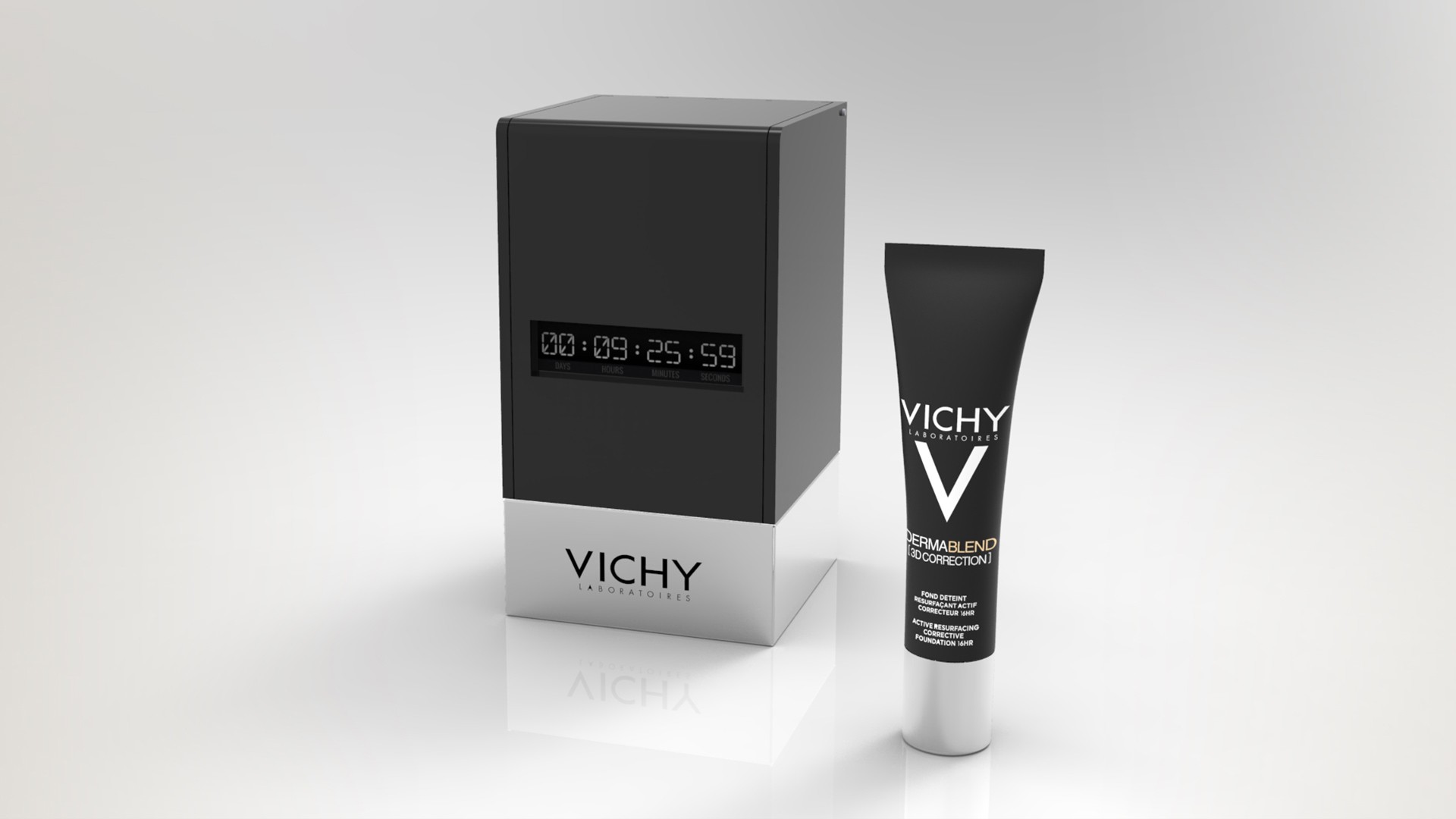 Modeled and animated exhibition setups for the Normaderm line, combining packaging redesign with digital display integration and motion visualizations for marketing presentations.
