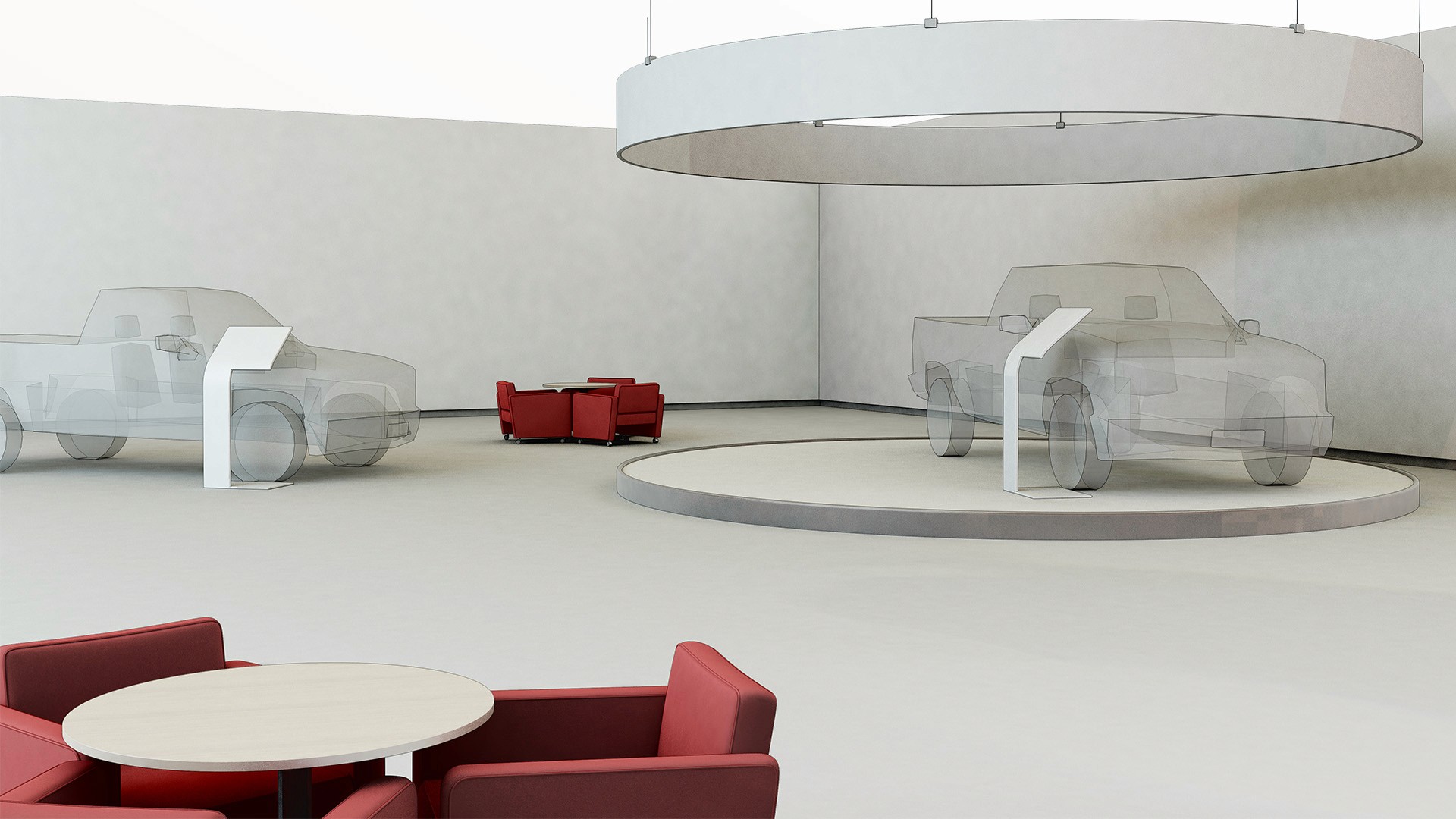 Designed a series of 3D renders and product display concepts for a new dealership experience reveal, including automotive display podiums, interactive showcases, and event installations for model launches.