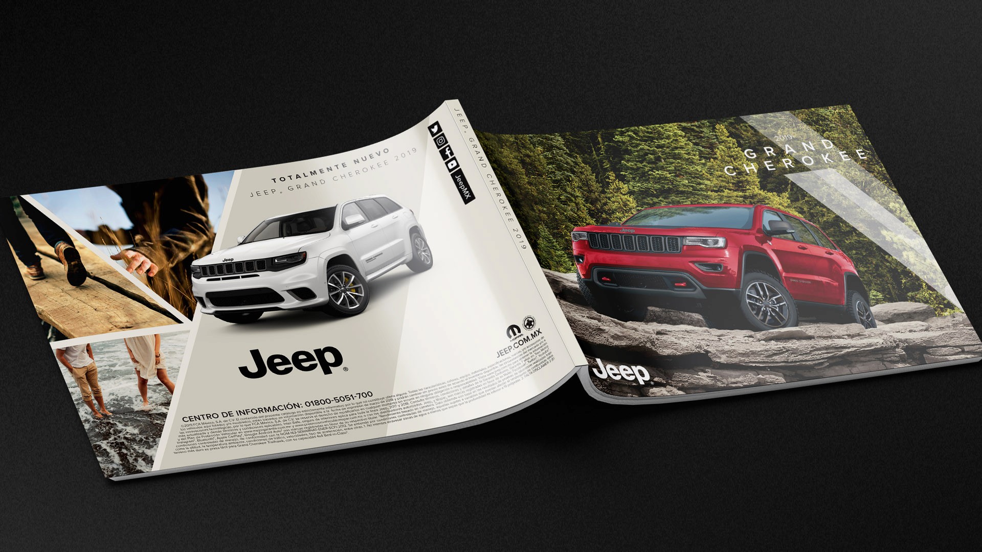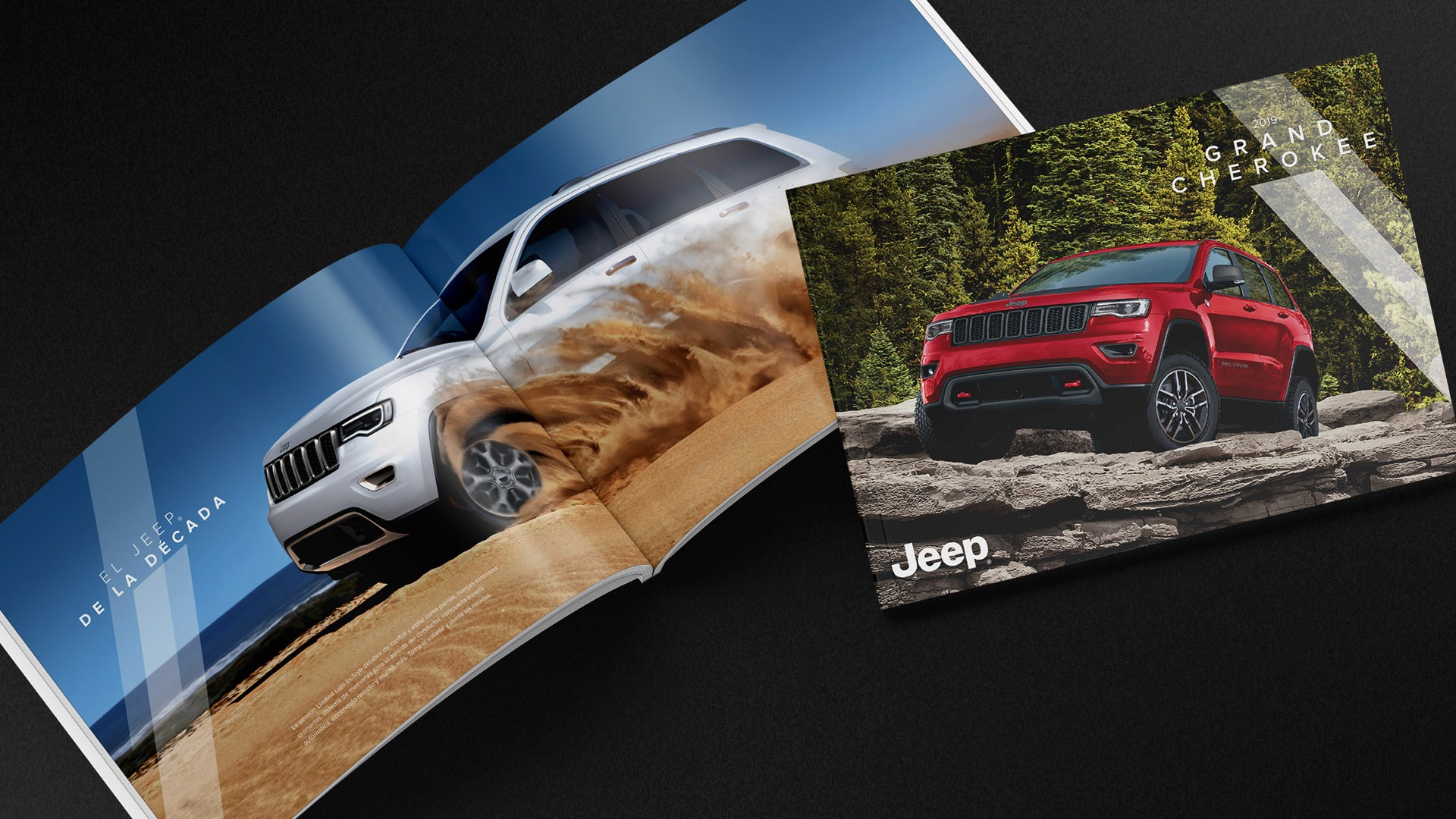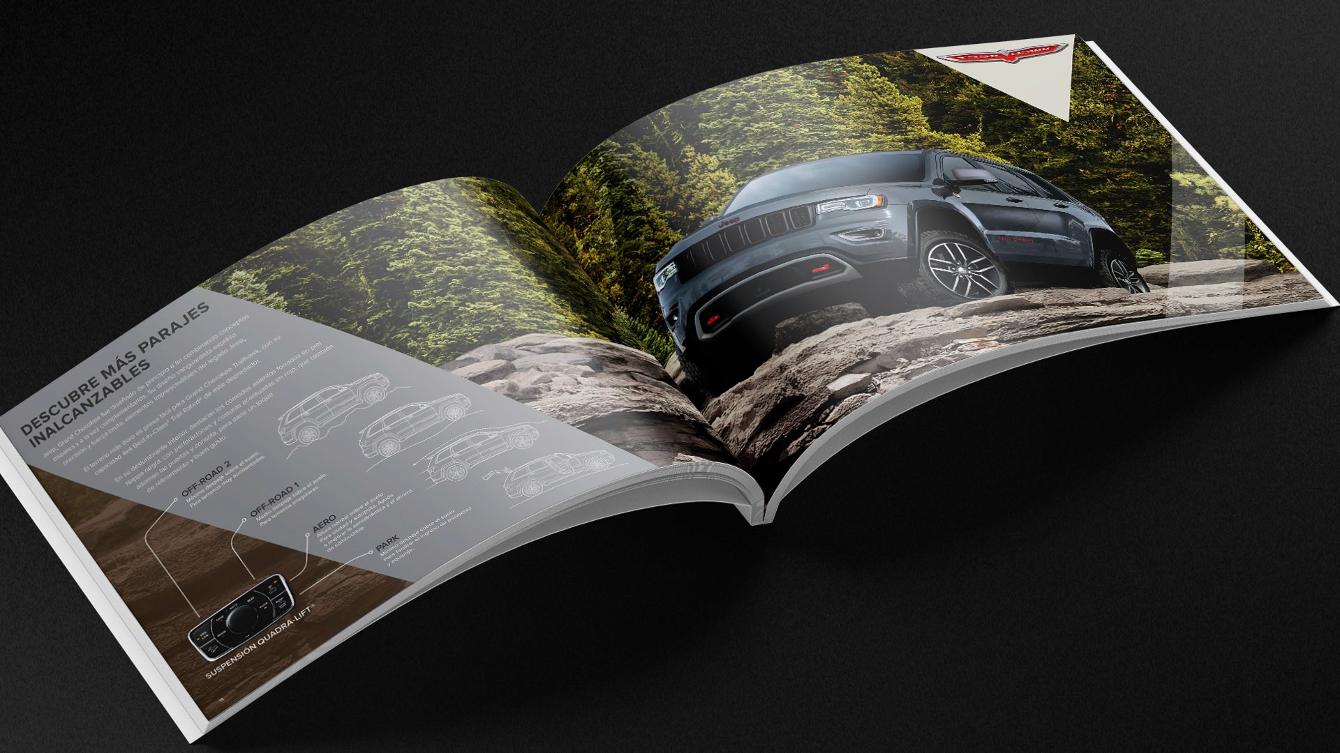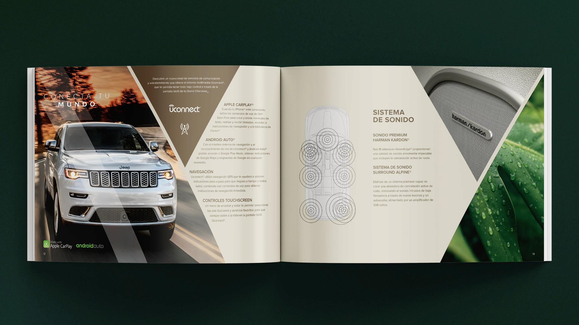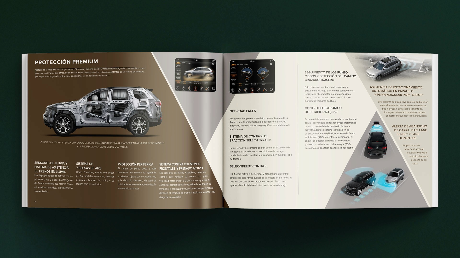 Grand Cherokee catalog layout showcasing premium features and design storytelling.
