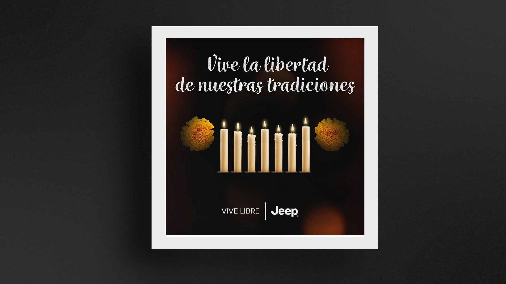 Animated papel picado featuring the iconic Jeep grille, honoring Mexican traditions, and soccer partnership: Dynamic social series connecting Jeep’s spirit to Mexico’s passion for football.