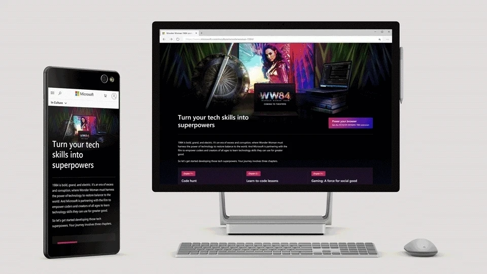 As part of the Wonder Woman 1984 global launch, Microsoft collaborated with Warner Bros. to create a digital campaign that connected the film’s narrative of empowerment and discovery with the power of technology. The concept: “Turn your tech skills into superpowers.” The campaign combined cinematic visuals with the sleek precision of Microsoft’s brand world — blending mythology, coding, and futuristic design into one cohesive experience. I was responsible for developing the master graphics and animation assets that brought this collaboration to life, ensuring both brands coexisted in a visually seamless way.