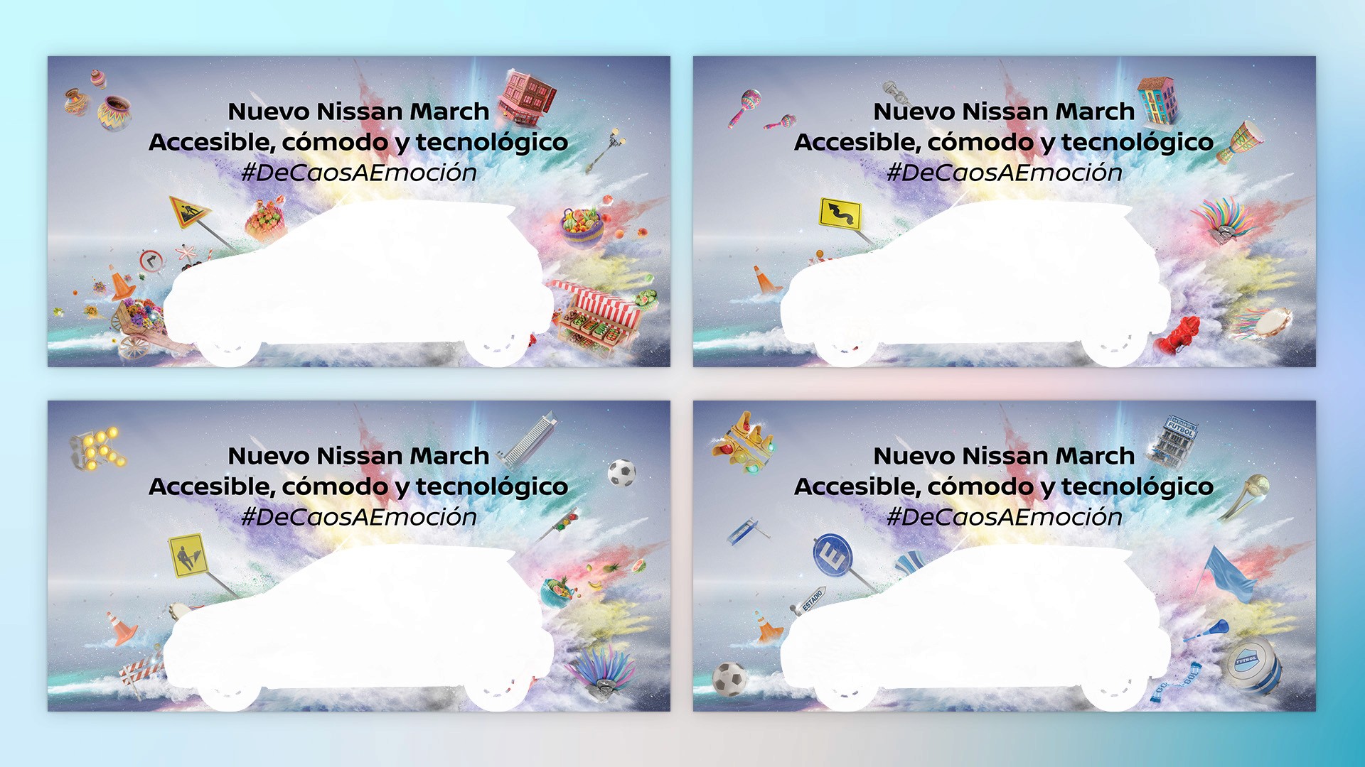 Playful and colorful, the Nissan March campaign captured youthful spontaneity. The creative idea was built around transforming everyday chaos into joy through smart design and technology.