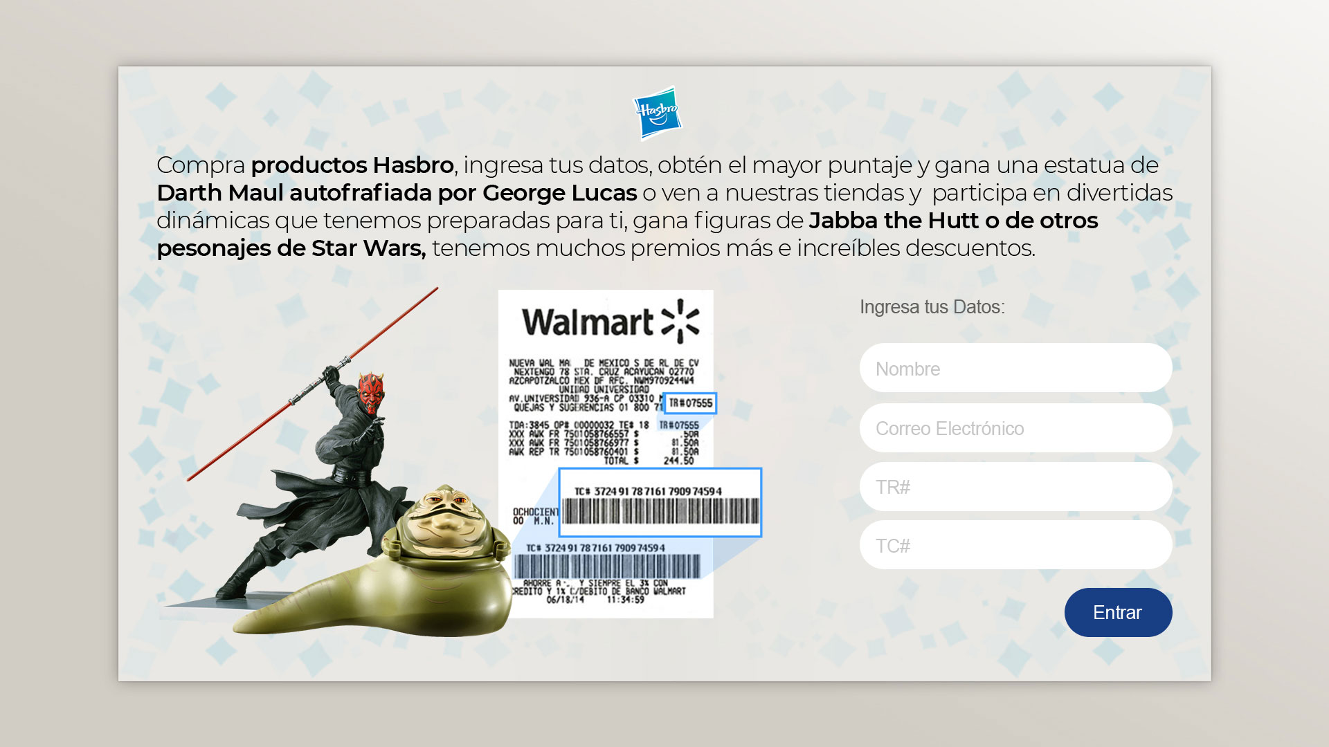 Designed a point-of-sale activation and digital trivia game experience for Star Wars at Walmart, including UX/UI design, promotional assets, and collectible packaging. The campaign featured one Darth Maul life-size autographed statue by George Lucas.