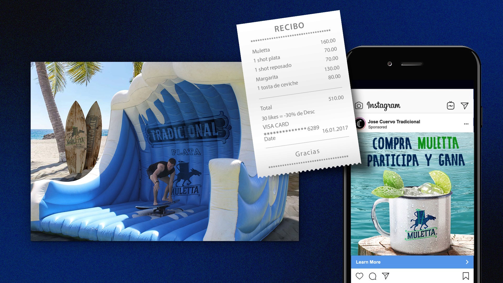 For Jose Cuervo Tradicional Plata, we developed the Muletta — a refreshing twist on the classic mule — and created a campaign that bottled summer itself. The visuals transported audiences to the beach through a tropical palette, wooden textures, and bright natural light.
